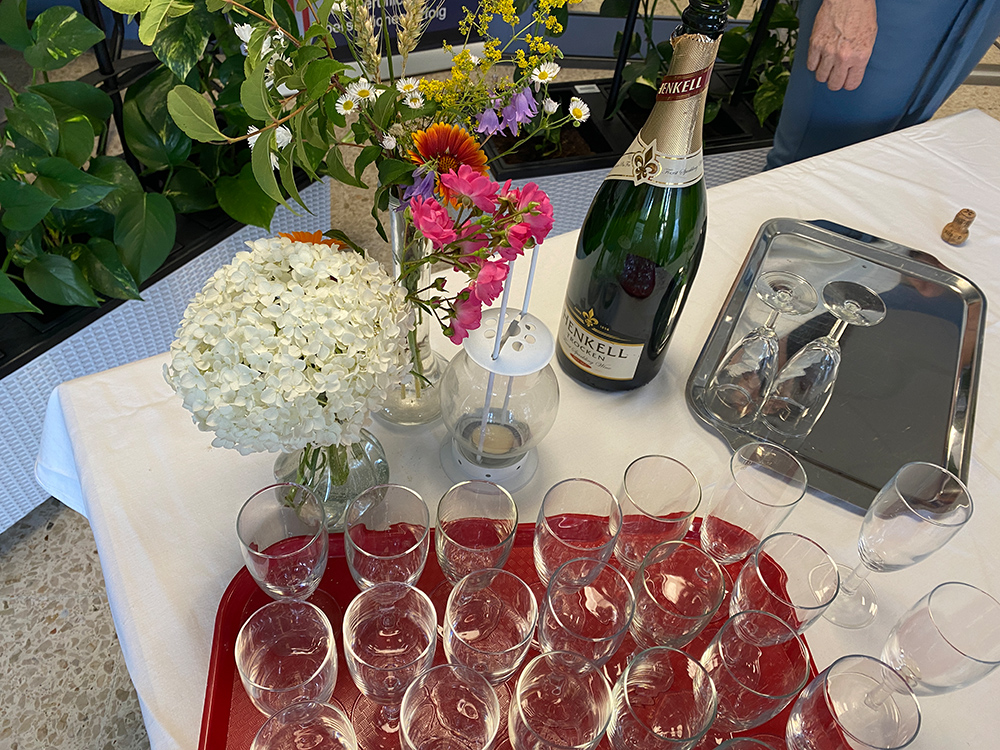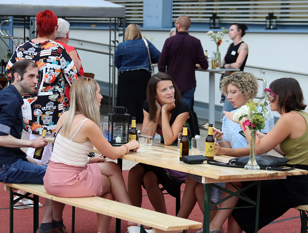 Viele folgten der Einladung und mit der musikalischen Begleitung der Hopfenswingers entwickelte sich ein entspannter Abend mit vielen „Weißt du noch?“. „Fleischbank by Poor“ verbreitete kulinarisch gute Laune und die aktiven Schüler organisierten die Cocktailbar und ein gutes Mehlspeisbuffet. Schon mit Betreten des Gebäudes kamen viele Erinnerungen hoch und bei den Führungen durch die Schule noch mehr. Nachdem das Wetter auch mitspielte, konnten AbsolventInnen und Lehrerinnen ein entspanntes Sommerfest im Hof „ihrer“ Schule, genießen!