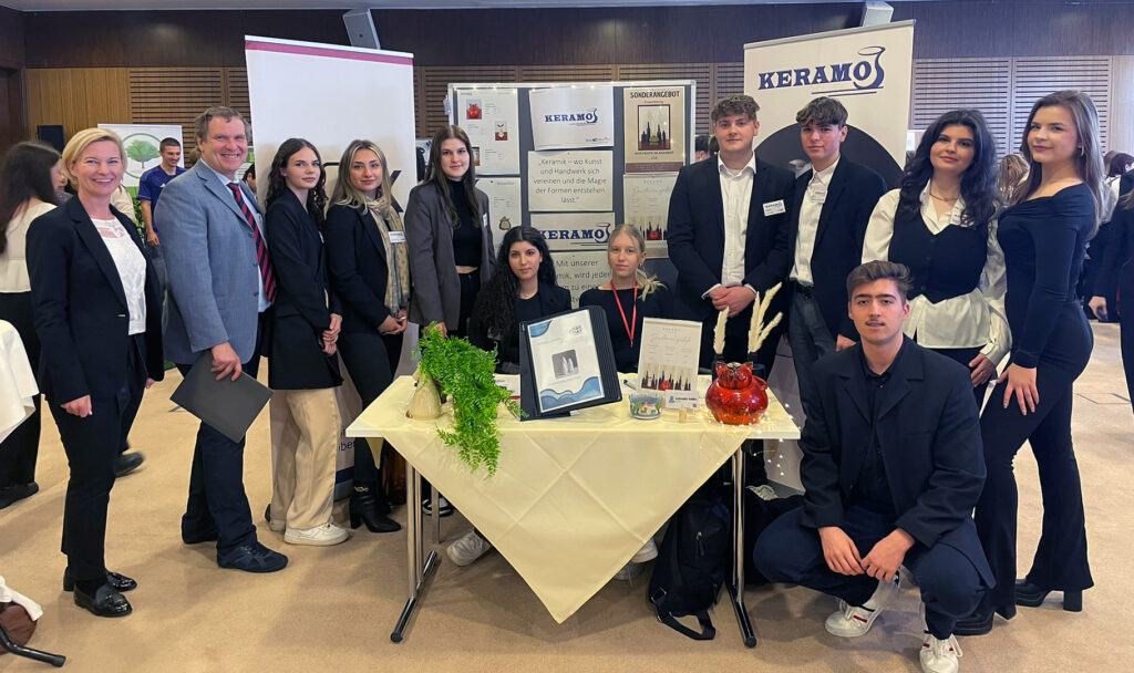 Ganz besonders gratulieren wir unserer Übungsfirma „Keramo“, die den 3. Platz bei der Bewertung der Standgestaltung und dem Führen von Verkaufsgesprächen erreichte. Super!