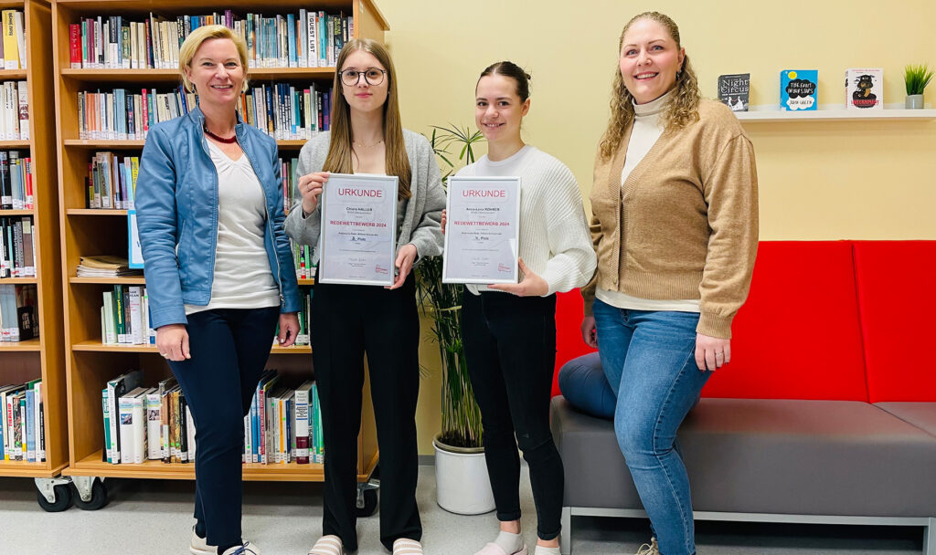 Wir sind stolz auf Chiara Haller (1S) und Anna-Lena Rohrer (3BK), die unsere Schule beim Redewettbewerb in der Kategorie „Klassische Rede“ vertreten haben!