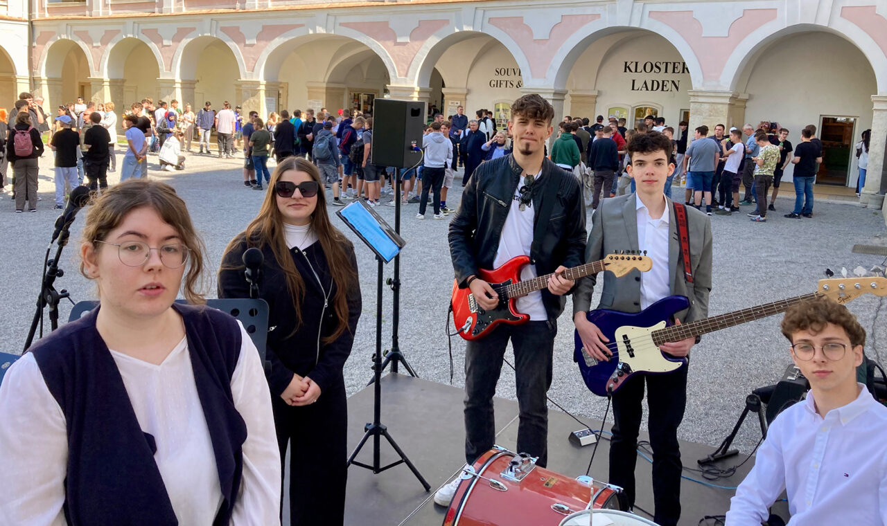 Die Schulband „Out of Order“ wurde nach ihren erfolgreichen Auftritten bei den Theotagen 2023 und 2024 in Eisenstadt eingeladen, auch den Tag des Lehrlings im Stift Heiligenkreuz musikalisch zu umrahmen.