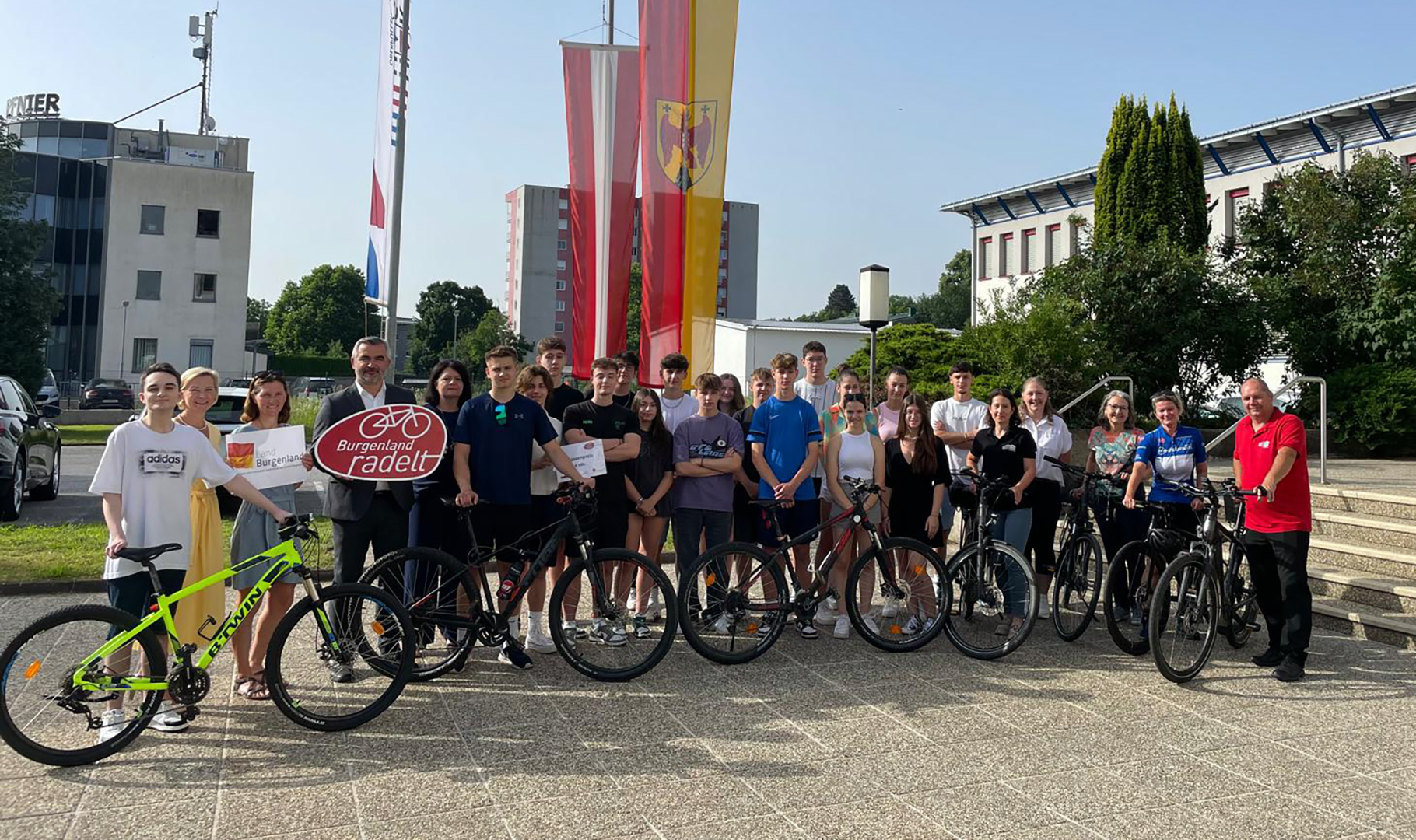 Die Klasse 3BK der HAK Oberpullendorf wurde für ihre Teilnahme an der Aktion „Burgenland radelt“ belohnt. LR Dorner überreichte ihnen persönlich einen unter allen teilnehmenden Klassen, die mindestens 500 km erreicht hatten, verlosten Geldpreis und lobte die Teilnahme der gesamten Schule an der Aktion. Die motiviertesten, am weitesten geradelten, SchülerInnen aus unterschiedlichen Klassen konnten sich außerdem über diverse Sachpreise des Landes freuen.